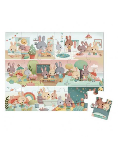 Un très bon support pour apprendre, partager et développer la motricité des petits. Présenté dans une valisette avec poignée, ce puzzle sera facile à ranger et à transporter. Livré avec un poster servant de modèle pour assembler le puzzle à son rythme. Ce puzzle aux couleurs douces est idéal pour les enfants dès 3 ans, avec ses 24 pièces adaptées aux petites mains. C'est un puzzle fabriqué en France et décoré à base d'encres végétales.