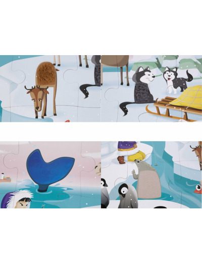 Les enfants vont adorer ce puzzle tactile géant sur le thème des animaux de la banquise. Ils feront travailler leur sens en touchant et en découvrant les matières et couleurs placées sur les animaux : pelage pour l’ours blanc, le manchot, effet paillettes pour le poisson, … Contient un poster servant de modèle. Puzzle : 65 x 50 cm. Nombre de pièces : 20, 7 pièces texturées. Ce produit est composé de matériaux certifiés FSC® et de matériaux contrôlés.