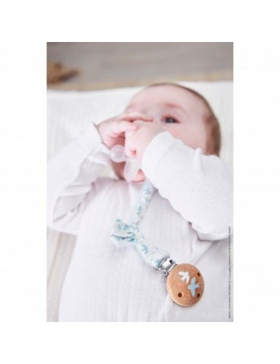 Avec son accroche en bois délicatement imprimé au coloris colombe, elle accompagne bébé partout où il va. Son imprimé Colombe lui donne une touche délicate.