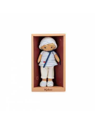 Adaptée aux bébés dès la naissance, Eli est une poupée qui invite à l'aventure à la mer ou l'océan ! Courir dans le sable, sauter dans les vagues, grimper à la recherche de petits trésors : c'est tout ce que Eli adore. Sa tenue se veut confortable et décontractée, elle se compose d'un haut marin à rayures avec une délicate broderie rouge représentant un poisson, et d'un pantalon large et léger. Indispensable pour éviter les coups de soleil, Eli porte également un chapeau assorti. Un joli ruban bleu autour de son cou permet d'inscrire le prénom de son petit propriétaire.