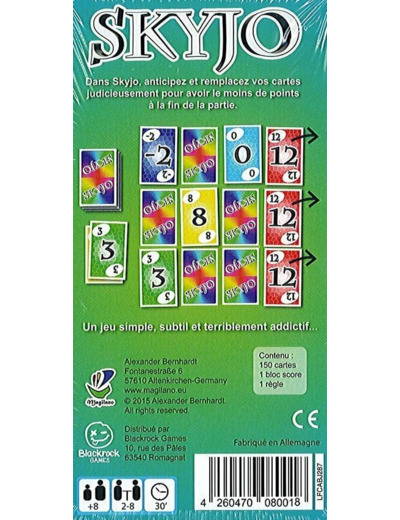 Une chose est sûre, le jeu Skyjo n’est pas du genre à passer inaperçu. Avec son design au premier abord surprenant il vient capter votre regard. Et puis, dans un geste quasi mécanique vous retournez la boite pour lire les règles… Ça y’est, vous êtes piqués… Prendre Skyjo en main, c’est accepter de découvrir une pépite ludique dont vous deviendrez accroc. Skyjo c’est l’alliance parfaite entre une mécanique de prise de risque et une stratégie d’optimisation. Il faut en permanence analyser la situation, regarder ses points, prendre le risque de dévoiler certaines cartes, ou d’en remplacer d’autres, en gardant un seul et unique objectif en tête : faire le moins de points possible en fin de partie.