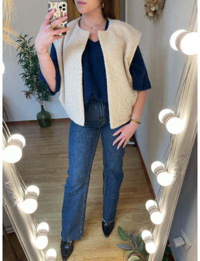 Veste sans manche de couleur écru, fini une tenue, se porte sous un manteau ou en veste!