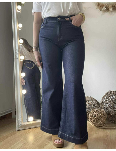 Jean brut avec poches léopard, bouton de fermeture sur le devant en forme de fleur.