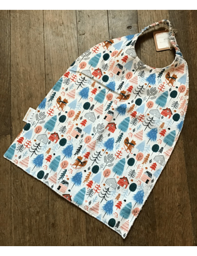 Bavoir enfant élastiqué, réversible, en éponge de bambou et tissu coton .