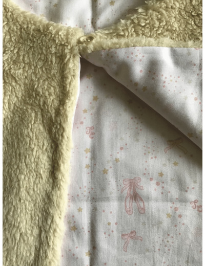 Gilet fille grâce à son intérieur tissu coton rose, ballerines de danse, qui se ferme avec un petit bouton en bois.