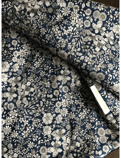 Tissu fausse fourrure bouclette bleu marine. Tissu coton OekoTex Liberty. Bouton en bois. Boucle élastique.