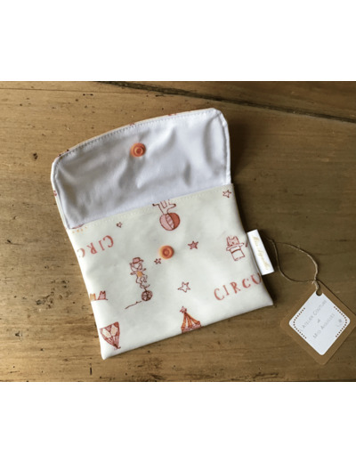 Composition : Tissu enduit pour l’extérieur. Tissu PUL imperméable pour la doublure. Pression.