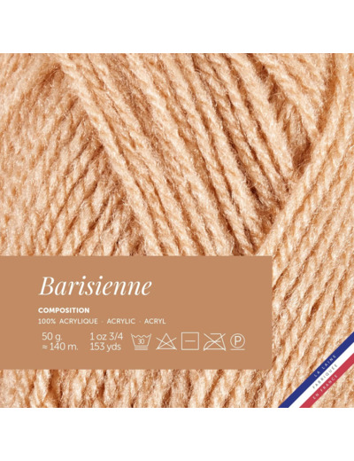 Pelote de laine Barisienne couleur Camée, 50g, +/- 140m, 100% acrylique, se travaille en aiguilles et crochet n°4.