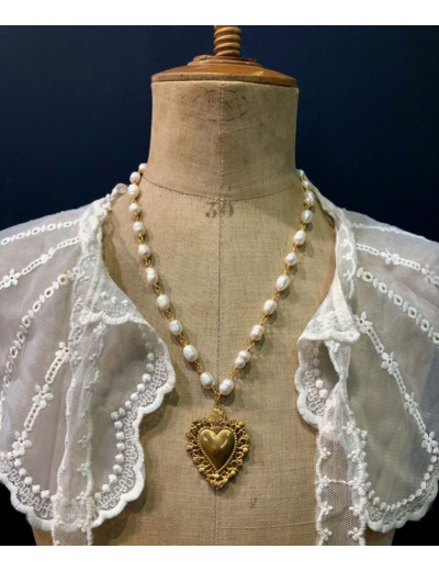 Ce pendentif inspiré de l'ex-voto est une pièce de choix, nous aimons le design complexe de cette pièce qui se marie bien en solo avec une chaîne texturée, ainsi qu'une breloque romantique et baroque. Nous aimons ces pièces conçues à partir d'objets de dévotion, ce qui donne aux bijoux beaucoup de sens et de symboles cachés.
