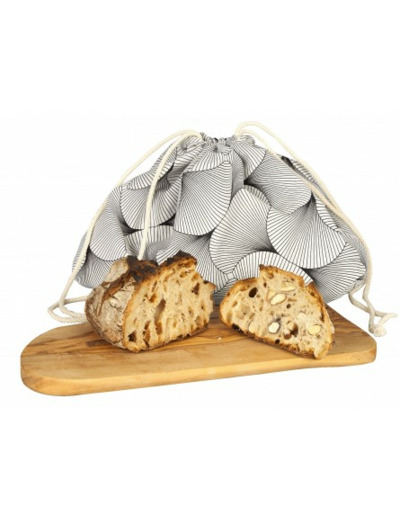 - Ce Sac à Pains est composé d’une toile 100% coton résistante à l’intérieure (blanc avec des motifs éventails) et un coton enduit à l’extérieur pour que les pains restent à l’abri de l’air, de la lumière.