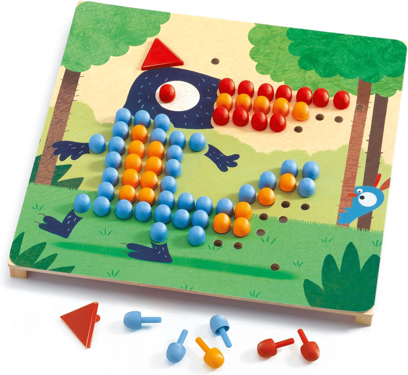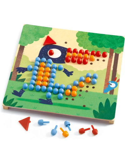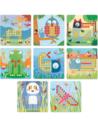 Jeu de mosaïque. Créer de fabuleux tableaux en complétant les 8 dessins avec les pions de couleur.