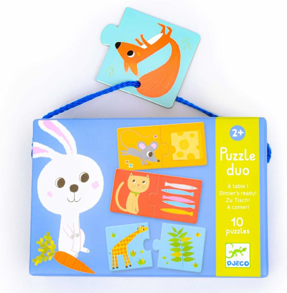 Puzzle Duo À table est un puzzle éducatif pour les tout-petits sur le thème de l’alimentation des animaux.