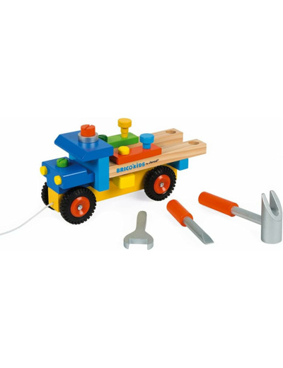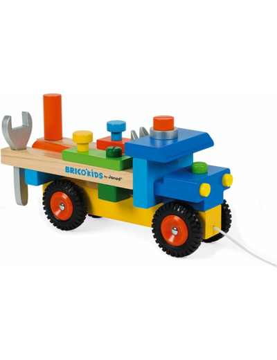 Construire et concevoir. Bip ! Bip ! Laissez passer le camion de chantier ! Ce cadeau idéal pour les petits bricoleurs à partir de 2 ans est un camion de bricolage multicolore en bois, offrant une double fonctionnalité en tant que jeu de construction et camion à tirer avec un cordon. Les enfants peuvent assembler un magnifique camion de bricolage à l'aide d'écrous, de plaques et de vis. Une fois construit, ils peuvent s'amuser à promener le camion dans toute la maison, favorisant le développement de leur motricité. Ce jouet vivement coloré stimulera également l'imagination de votre tout-petit, l'invitant à créer de nombreuses histoires autour des chantiers et de la construction. Doté d'axes de roues en métal et de roues en plastique, ce camion est particulièrement robuste, et il est composé de 17 pièces, dont 3 outils.