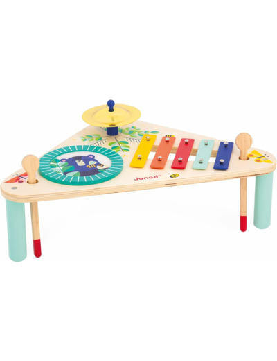 Faisant partie de la collection Gioia, cette table musicale arbore des couleurs chaudes et exotiques. Fabriquée en bois certifié FSC et peinte à l'eau, elle initie les enfants à la musique tout en respectant l'environnement.