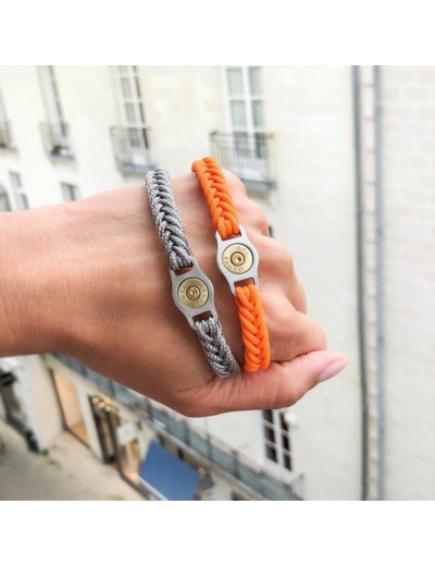 Bracelet douille et cordon tressé Bang Bang! Sobre, élégant et masculin, il est devenu un incontournable de la collection Bang Bang. Le bracelet est composé d'un cordon tressé de couleur. Sa plaque en acier est sertie d'une authentique douille percutée de calibre 9 mm.
