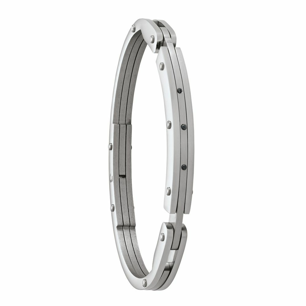 Bracelet rigide acier et spinelle noire