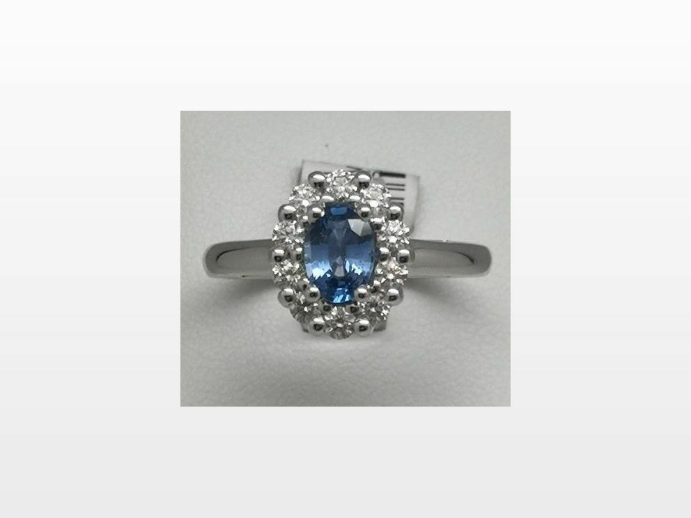 Bague or blanc 750 mil et saphir diamants