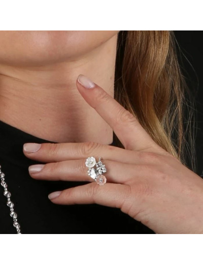 Très belle bague avec fleurs en résine, et oxydes de zirconium, monture fleurie. Collection Jardin Secret