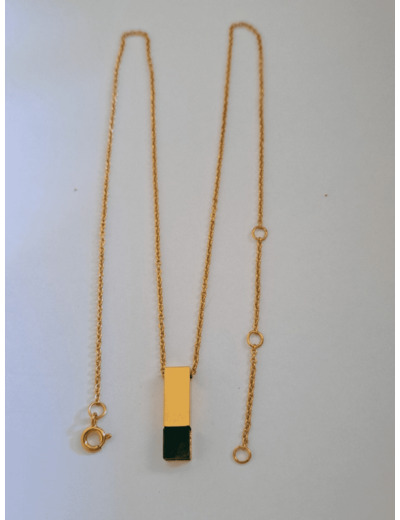 Collier mini joaillerie en bois, loupe de marronnier teintée vert et laiton palladié plaqué or 23 carats - 3 microns