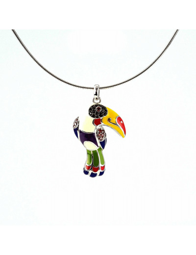 Pendentif argent Una Storia, Toucan, émail et oxydes de zirconium