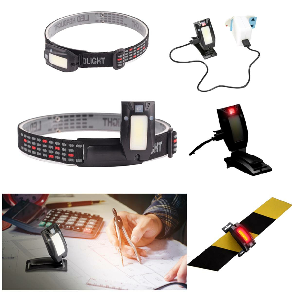 Lampe frontale à éclairage LED COB 3W très puissant, jusqu’à 150 lumens.