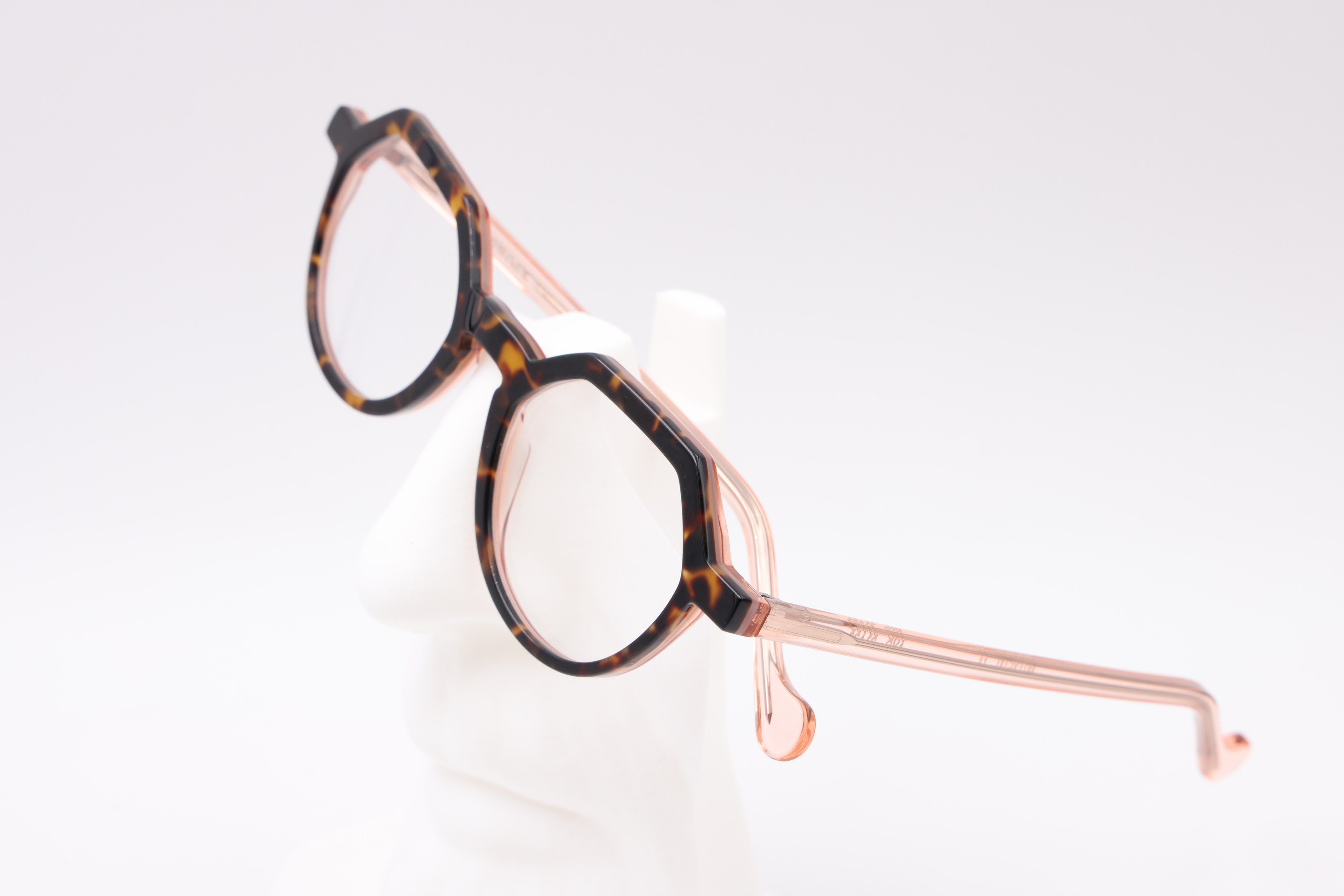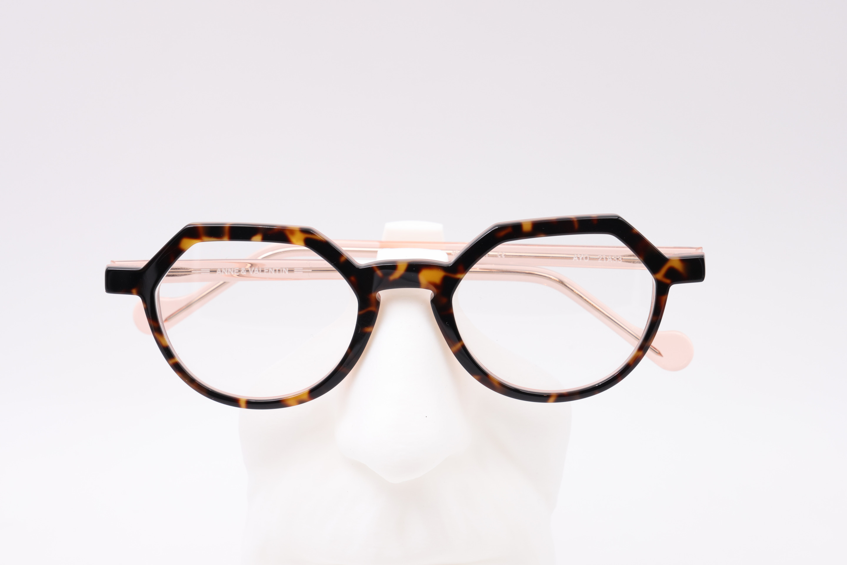Le modèle AYO séduit par son design hexagonal moderne , alliant structure et légèreté. La face en écaille marron chaude, associée à des branches translucides rose pastel, crée un contraste doux et féminin . Fabriquée en acétate de haute qualité , cette monture reflète le savoir-faire artisanal d' Anne et Valentin et offre une finition soignée qui assure confort et durabilité.