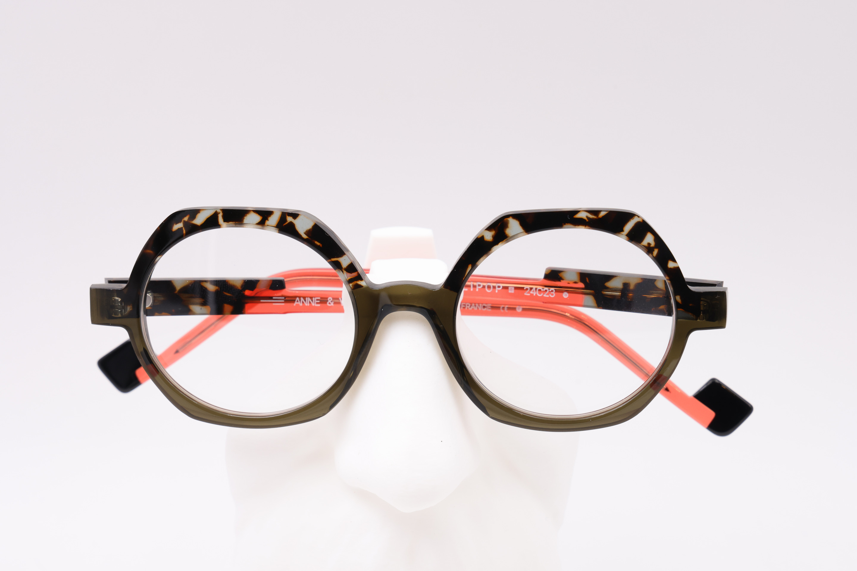 Le modèle LOLLIPOP se distingue par sa forme géométrique douce , qui équilibre lignes précises et courbes subtiles. La face en écaille brun-vert, associée à des branches rouge corail translucide, offre un contraste saisissant et moderne . Fabriqué en acétate premium , ce modèle conjugue robustesse, confort et une finition impeccable, typique de l'excellence d' Anne et Valentin .