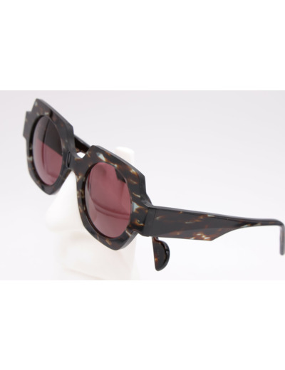 Le modèle SMET en taille 47-24, dans sa teinte 24D25, séduit par son acétate écaille aux reflets profonds et ses verres solaires teints bordeaux. Sa forme géométrique oversize est une signature iconique, alliant graphisme et élégance décalée. Les nuances tortoise jouent avec la lumière pour offrir un effet boost couleur absolument unique.