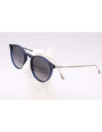 Le modèle BIG MILES C04 se distingue par sa forme pantos arrondie revisitée, offrant un look rétro revisité. Sa monture en acétate bleu nuit translucide capte la lumière avec profondeur, tandis que les branches en métal finition titane mat ajoutent une touche de technicité sobre. Les verres solaires gris dégradés soulignent le style tout en assurant une protection optimale.