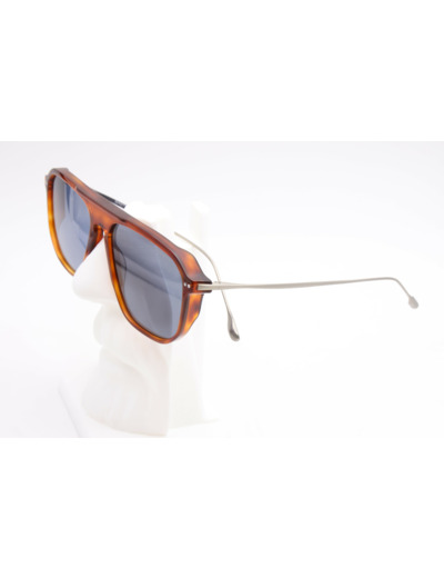 Cette version solaire du modèle TONY est dotée de verres gris-bleutés de catégorie 3, assurant une excellente protection contre les rayons UV. La taille 56 offre un équilibre parfait entre confort et couvrance, idéale pour les visages masculins. Les branches fines en métal garantissent un maintien stable, tout en soulignant le contraste élégant avec la face en acétate brillante.