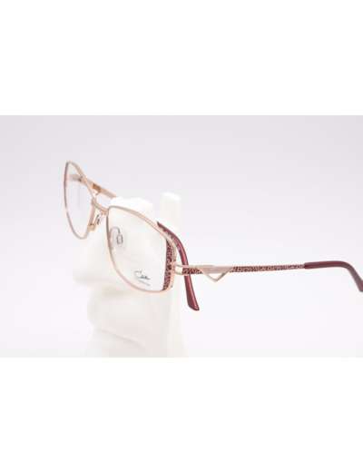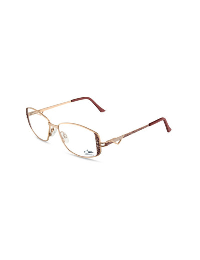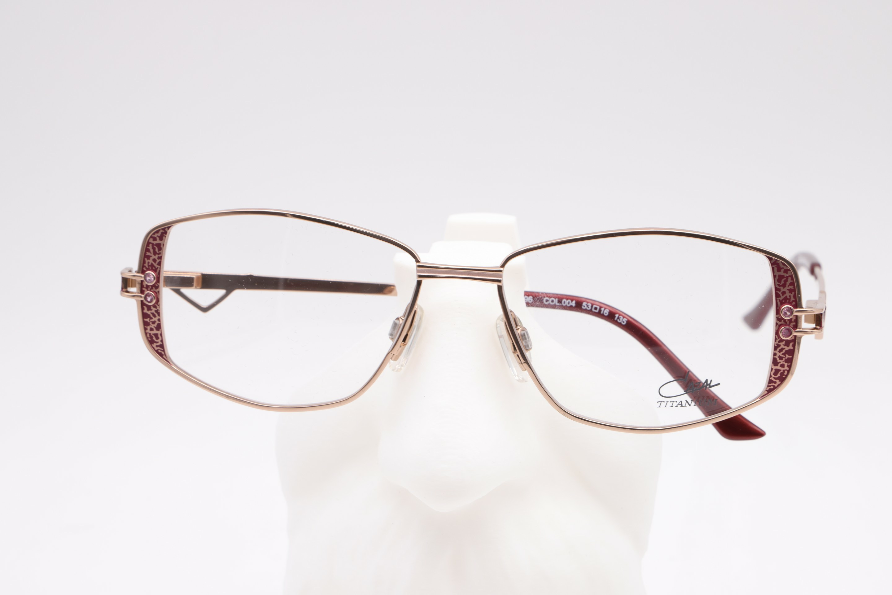 Le modèle 1296 en taille 53-16 et coloris C004 illustre parfaitement l’ADN de CAZAL. Sa structure en titane, à la fois robuste et légère, garantit confort et durabilité. La monture dorée se pare de détails travaillés en rouge profond à motifs texturés, rehaussés de petits strass raffinés sur la face, pour un rendu à la fois élégant et féminin. Les branches ornées prolongent ce jeu graphique, confirmant le caractère singulier et précieux de ce modèle.