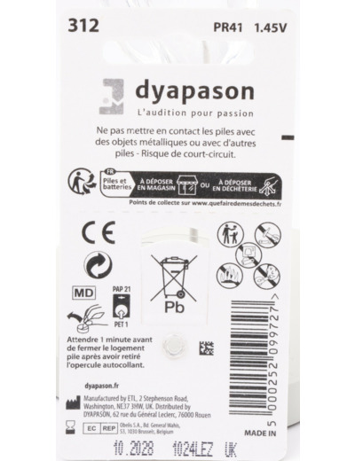 Conçues pour répondre aux besoins des appareils auditifs nouvelle génération, les piles auditives 312 Dyapason offrent un excellent rapport qualité-prix sans compromis sur la performance. Développées en partenariat avec le leader Rayovac, elles bénéficient du label Dyapason, gage d’exigence et de qualité, réservé aux audioprothésistes indépendants.