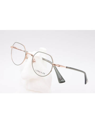 Le modèle GABY10 en coloris OLOR séduit par son design géométrique, aux lignes douces et anguleuses à la fois, créant une silhouette originale et féminine. La structure fine en métal bicolore – vert olive pour la face, doré rosé pour les branches – reflète une délicatesse toute en subtilité. Les embouts en acétate foncé, ornés du motif emblématique de la patte de chat, ajoutent une touche de fantaisie fidèle à l’univers poétique de Paul & Joe.