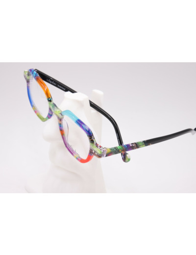 Le modèle OA2504 C1 est un concentré de fantaisie maîtrisée. Sa forme hexagonale adoucie s’appuie sur un acétate à la palette multicolore arc-en-ciel, fusionnant bleu, vert, violet, rouge, orange et jaune dans un patchwork de nuances translucides et vibrantes. Les branches en acétate noir sont ponctuées d’un motif bariolé en rappel, ajoutant un effet décalé mais équilibré. Mention spéciale : cette monture est compatible avec un clip solaire polarisé pour une double fonctionnalité pratique et stylée.
