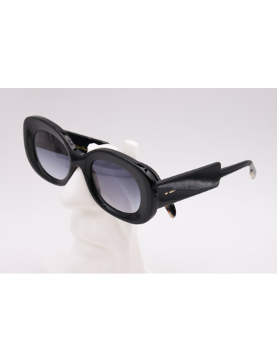 Avec sa face noire brillante et sa silhouette ovale oversize, la Paname Agnès C2 affiche un design sobre mais impactant. Les branches épaisses en acétate noir profond prolongent cette ligne graphique, tandis que les manchons effet écaille ajoutent une discrète touche de chaleur. Une monture pensée pour révéler la force tranquille de celles qui la portent.