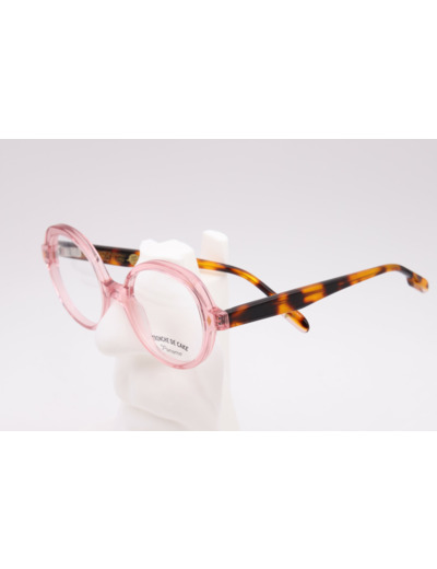 La Jacotte C1 séduit par son association pleine de charme : une face rose bonbon translucide qui capte la lumière avec douceur, associée à des branches écaille havane qui lui donnent une touche rétro et élégante. Sa forme ronde légèrement oversize évoque les héroïnes intrépides des contes modernes, tandis que le jeu de matières en acétate garantit style et confort.