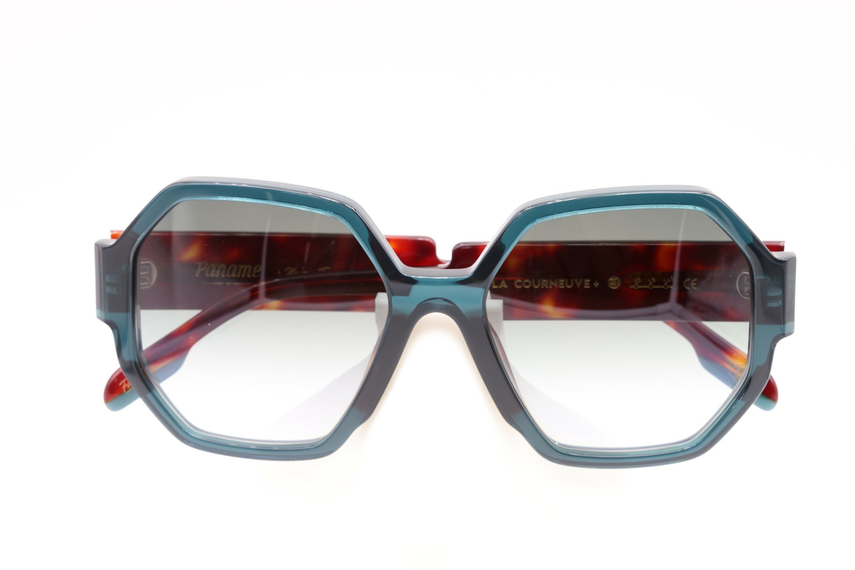 Avec sa forme octogonale géométrique et son audacieux mariage de teintes bleu pétrole en façade et branches écaille brune flamboyante, la LA COURNEUVE C1 affiche un look rétro-futuriste totalement assumé. Conçue en acétate de cellulose, elle conjugue solidité, confort et esthétique ultra-moderne. Les verres légèrement dégradés ajoutent une touche chic et protectrice.