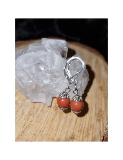 Boucles d'oreilles dormeuses jaspe rouge, fait main, argent 925