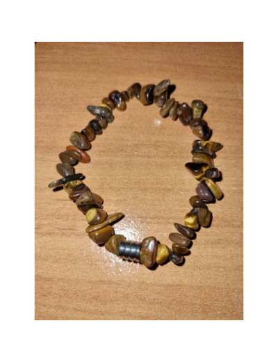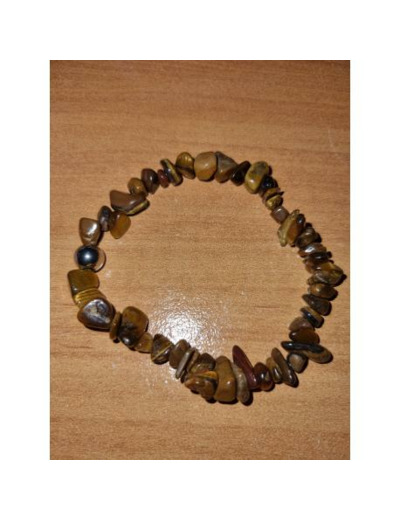 Bracelet, perles chips, oeil du tigre, fil élastique, fait main