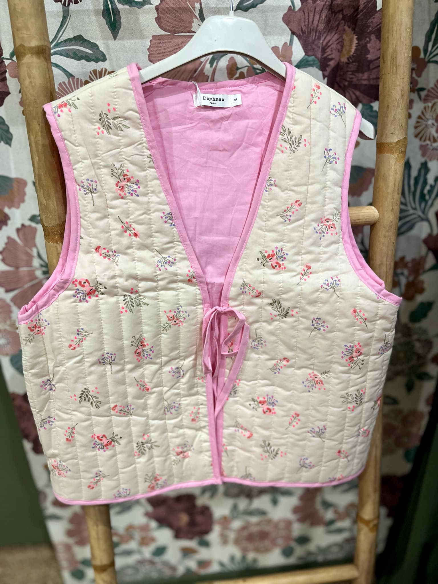 Ajoutez une touche de fraîcheur à votre garde-robe avec cette veste fleurie sans manches, fabriquée en 100% coton pour un confort optimal.
