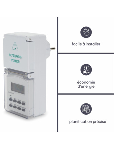 + Économie d'énergie: Le minuteur vous permet de réduire le gaspillage d'énergie en éteignant automatiquement les appareils lorsqu'ils ne sont pas utilisés, ce qui permet de réduire les coûts énergétiques.