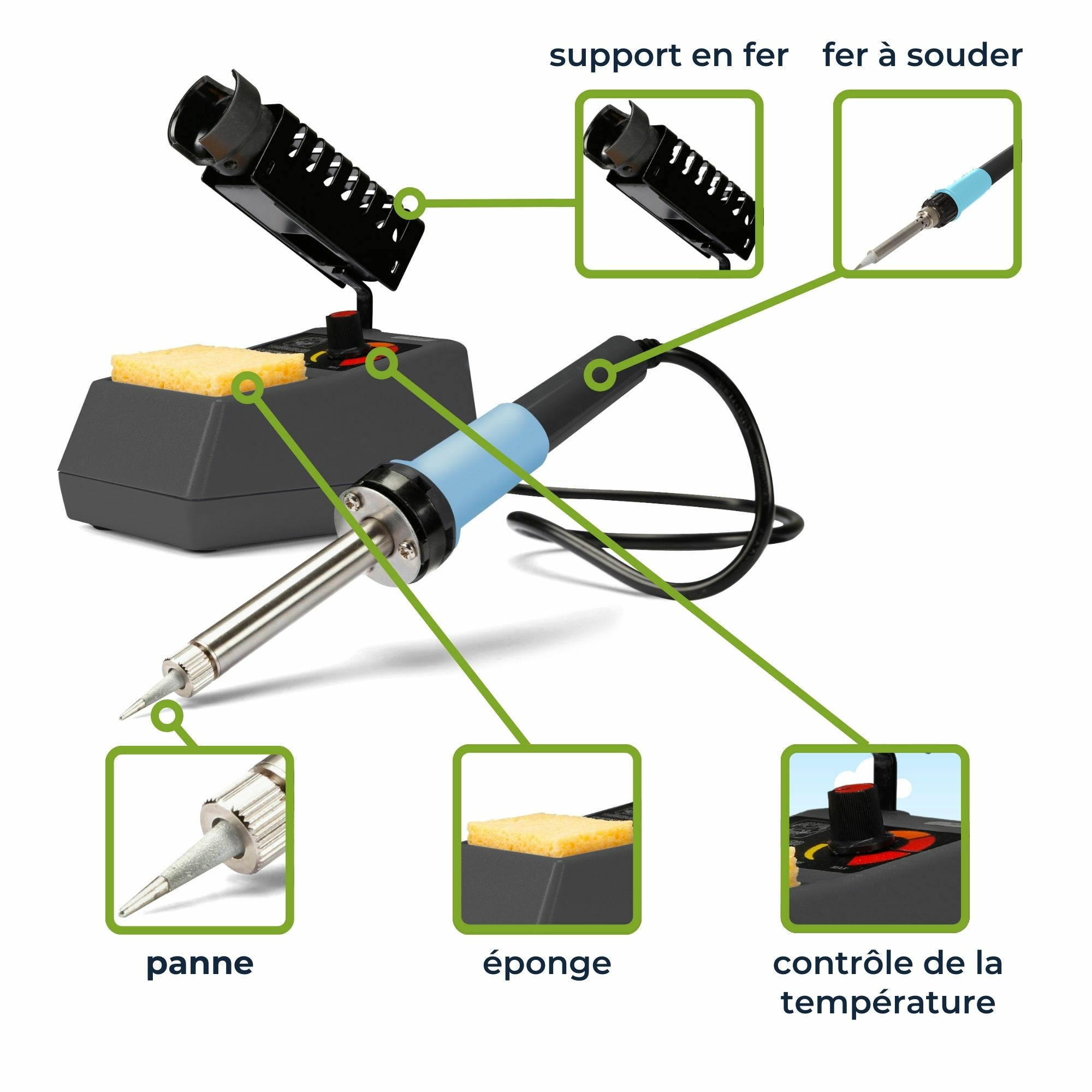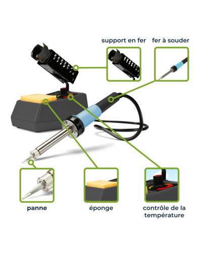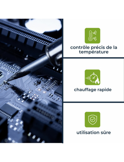 + Poignée ergonomique: La poignée ergonomique permet d'utiliser le fer à souder en continu sans fatigue ni surchauffe.