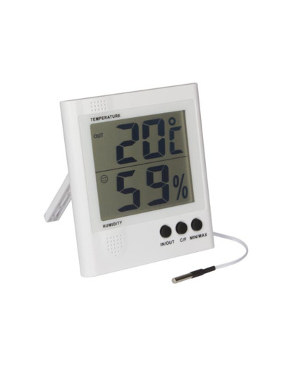 L'appareil peut être utilisé autonome ou fixé au mur, affiche la température en °C ou °F et est alimenté par une pile AAA de 1,5V (non incluse). Grâce à son design compact et à ses mesures fiables, la surveillance de l'environnement intérieur devient un jeu d'enfant.