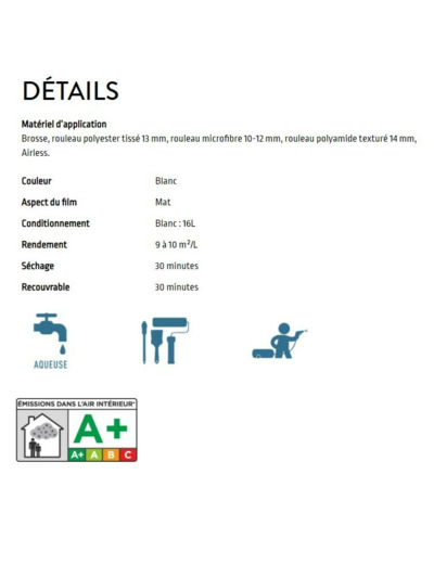 Peinture acrylique satin – Impression et Finition. Destinée aux travaux d’intérieurs neufs ou de rénovation,
