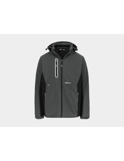 • Veste multi-poches softshell 3-couches, doublée, respirante, déperlante et coupe-vent