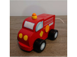 Après remontage du mécanisme, la mélodie jouée retentit et la voiture des pompiers commence à rouler.