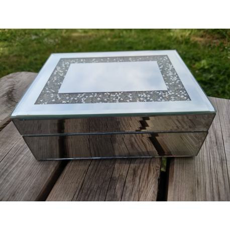 • Décoration : contour de la boite miroir et strass dans le couvercle ; intérieur de la boite velours